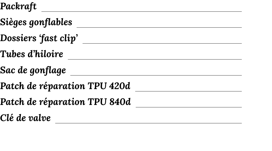 INCLUS AVEC VOTRE PACKRAFT.
